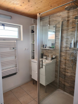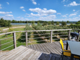 Belle propriété située en boucle de seine comprenant une maison ossature bois de 64 m² entourée d'un verger. Le rez-de-chaussée est composé d'une entrée avec vestiaire, une chambre avec dressing, une salle de douche et un WC. Au premier étage, une belle pièce lumineuse comprenant une cuisine aménagée et équipée ouverte sur séjour avec poêle à granulés donnant sur une terrasse vue sur seine, un WC et une chambre avec dressing et salle de douche . Chauffage poêle à granulés et électrique. Disponibilité le 08/11/2025. Loyer : 1100€ - Charges : 20,50€ (entretien poêle et teom) - DG :1100€ - Honoraires locataires : 450€.